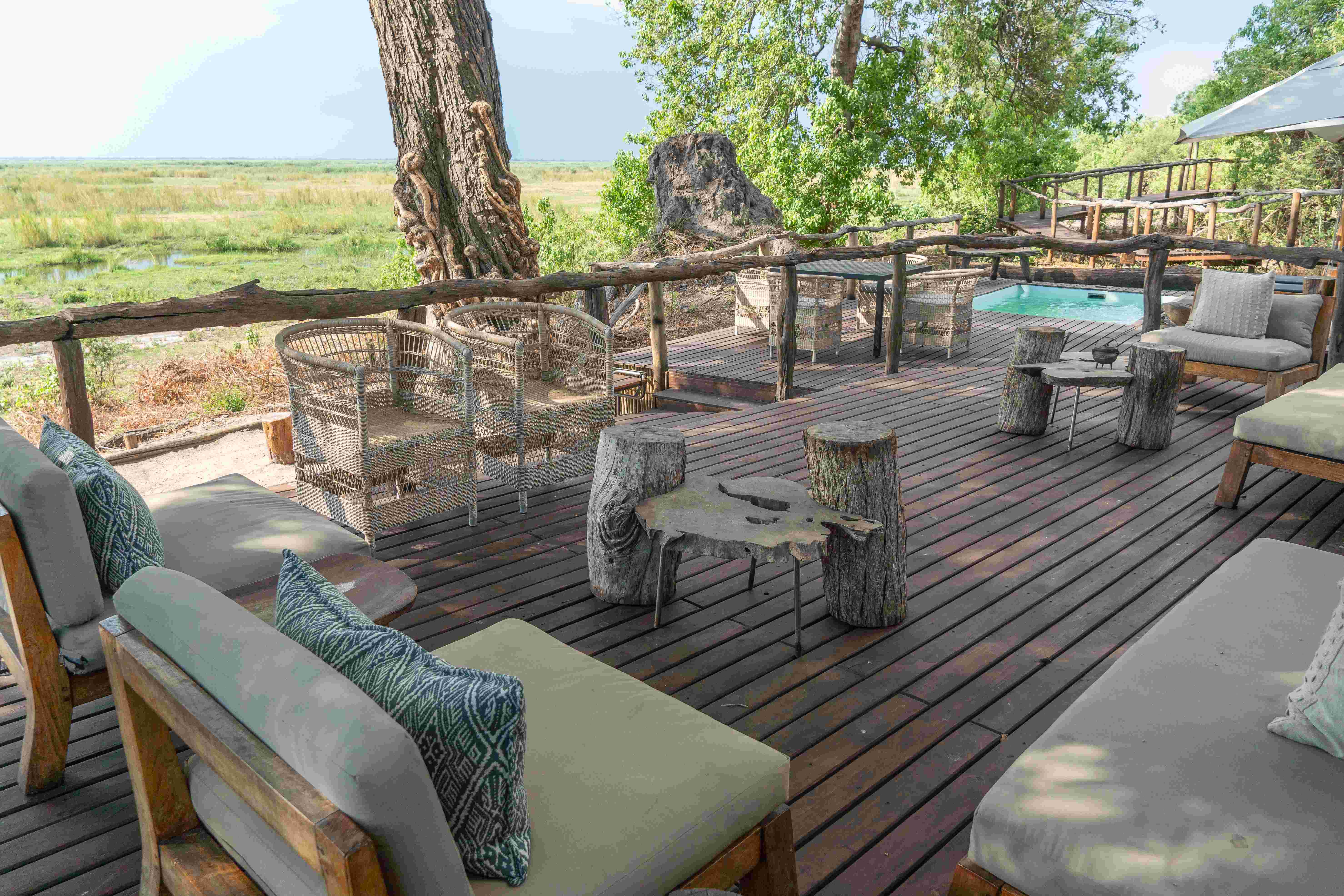 Set on elevated decking with sweeping views of the Linyanti Wetlands, Linyanti Ebony blends effortlessly into its African surroundings using organic materials and authentic accents. The warm wooden elements, stone details, and natural textiles foster the perfect balance of luxury and nature. Refresh in the sparkling plunge pool and relax in the generous lounge and dining area. Gather around the firepit beneath the starlit sky to recount the day’s safari adventures. Experience an enchanting setting for sharing nature and forging lasting family memories in the African bush.